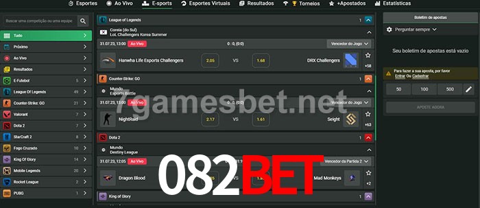 O 082Bet oferece uma grande seleção de opções de apostas em e-sports com probabilidades competitivas